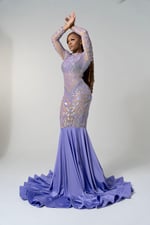 This gorgeous dress will accentuate all your curves and have you feeling like a princess. Dress is made from a beautiful lilac color sequin garment. This dress is semi sheer, please let us know if you would like dress to be lined prior to purchase, additional fees may apply. Gown is carefully cut and sewn to perfection. Dress can be worn for various events ranging from proms, red carpet galas, photo shoots, birthdays and much more.